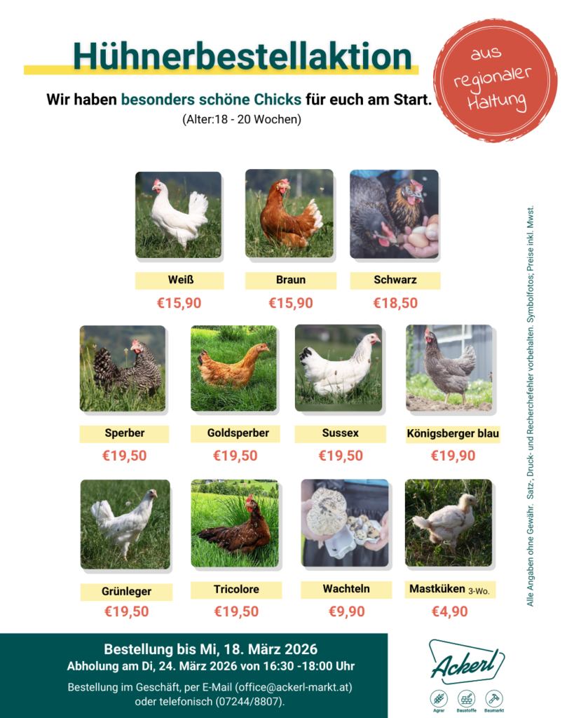 Wir freuen uns auf eure Bestellung und wünschen schon jetzt viel Freude mit euren neuen gefiederten Mitbewohnern! 🐓